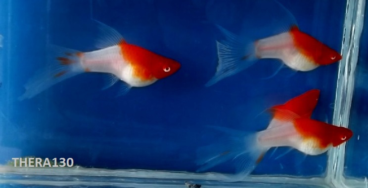 Меченосцы Кои Санке(Сева) , Koi Sance (Showa) ,Трехцветный Кои . Эти меченосцы с белой фоновой(См. пояснения на фото ниже) .