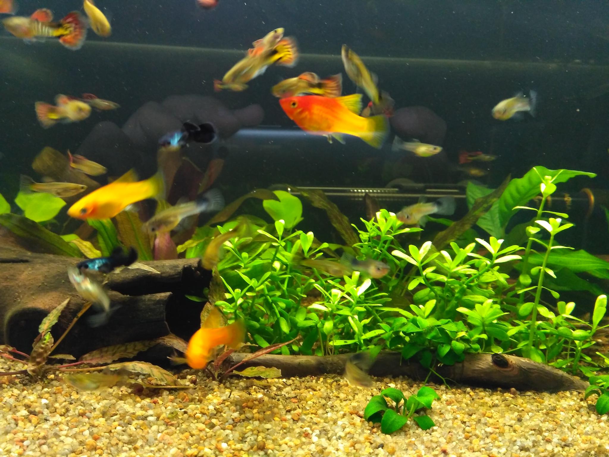 Мои пецилии Гаваи, взрослые и еще не окрашенные молодые.Жаль долго нужно пока окрасятся.