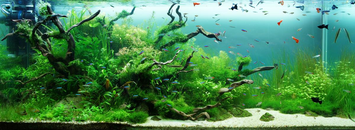Думаю, мало кого оставит равнодушным этот аквариум. Я, естественно, то же в восторге. Водопад под водой не может не впечатлить. Плюс ощущение ,что вода скатывается по камням, плюс диковинными цветками выглядят буцефаландры среди зелени. Красота красотезная, одним словом.