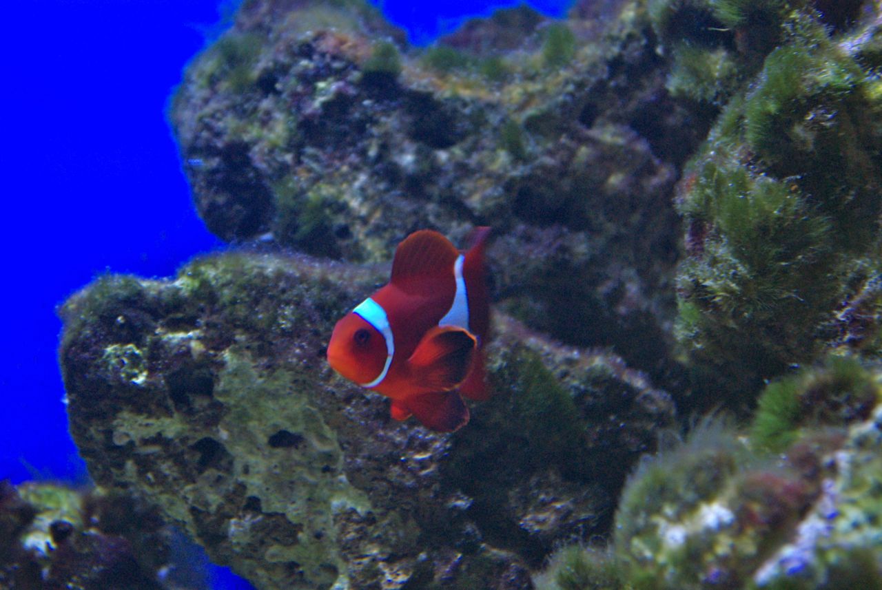 Прошел уже почти месяц с запуска аквариума, камни покрылись водорослями диатомовыми , есть и циано на грунте, нитчатка пока не была замечена, несколько дней назад приобрел морского ежа Диадему, еж быстро освоился и поночам хряцает водоросли с камней, утром видны "тропинки" его работы. Актиния прекрасно себя чувствует, значительно выросла, раскрывается каждый день и с удовольствием проглатывает корм который ей носит Премнас, иногда даю ей кусочки рыбы, потребляет ее тоже с охотой. Пеноотделитель, работает, граммов 150 за сутки выбивает грязной воды, но хорошей пены от него пока добиться не удалось, может живности мало, а может помпа на 2500 л.ч. маломощная.