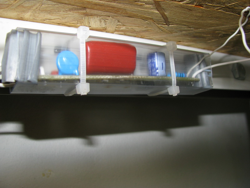 ALEXRIM1983, Все прекрасно работает. Как видно на фото выше постом, гасяжка находится в пластиковом корпусе. Не думаю, что его сразу так и разорвет. Кстати, кто хочет, можна края пластикового корпуса залить силиконом - вот и влагозащита!  Если б гасяжка стояла в крышке аквариума - то тут да, согласен, ночью бы выпадал конденсат, а так не вижу проблем.