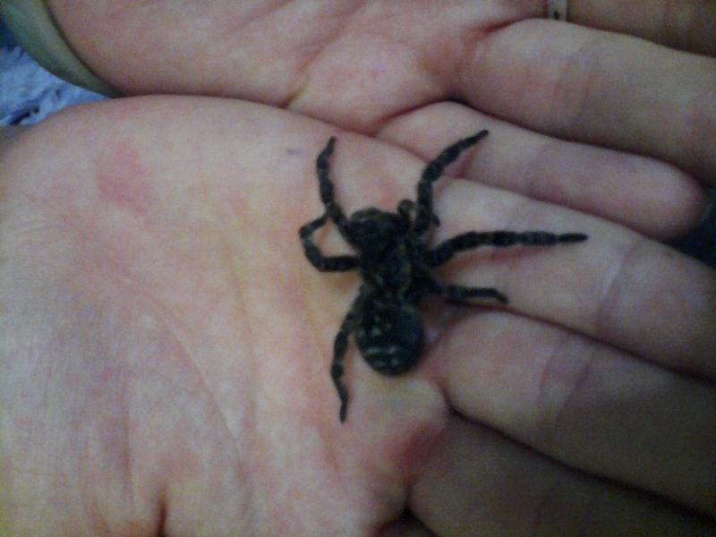 мне принесли паука, был пойман в погребе, что за зверь понятия не имею... вроде похож на южнорусского тарантула, но чёрный....