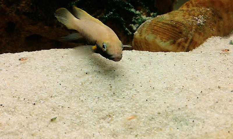 Больше недели "лежит" самец на камне а под камнем самка с мальком.Это уже их третье гнездо за месяц,причём каждый раз в новом месте.Раньше у них было только одно стабильное место для нереста,сейчас по всему аквариуму.Что очень нравится,так это полное отсутствие агрессии со стороны самца к другой рыбе,просто как бы охраняет камень и всё,типа "я вас не трогаю и вы меня не доставайте".