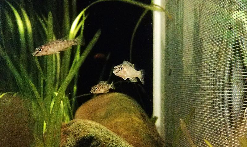 Уже смело могу сказать что наконец то удалось поднять малька Neolamprologus fasciatus в кол-ве 3 шт.Из всех нерестов,а их было приблизительно 10 у каждой самки,в итоге от двух самок имел порядка 500 мальков и вот только эта тройня имела огромное желание меня порадовать.