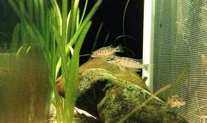 За три месяца заметно подрос малёк Neolamprologus nigriventris,уже во всю выясняют отношения между собой.
