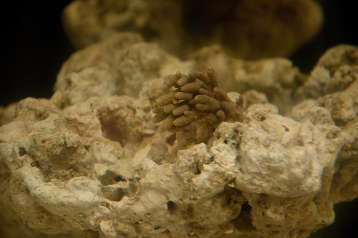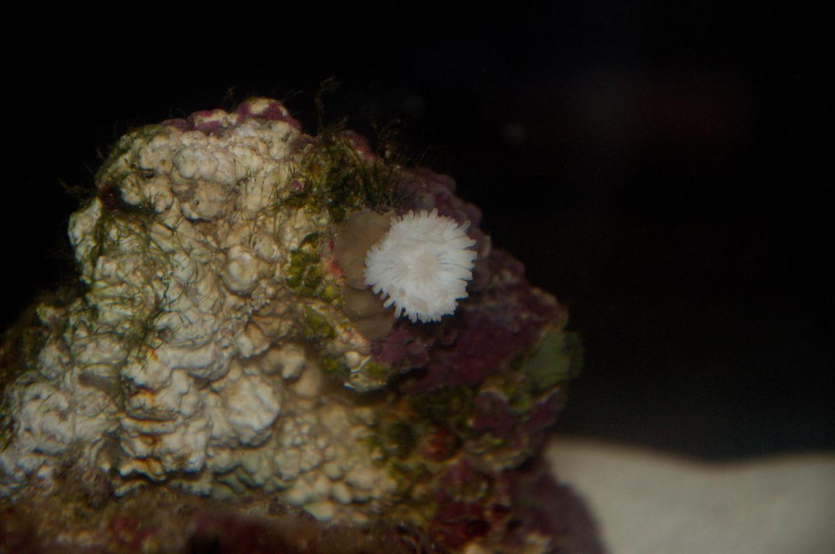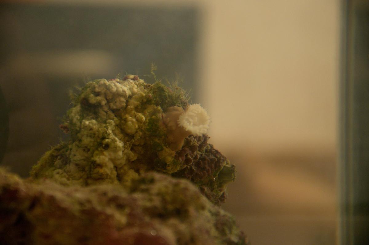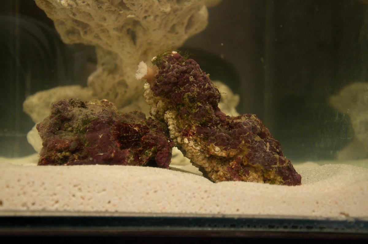 На одном камушке сидит коральчик, как мне показалась актюха, но очень манюсенькая, ночью пустилась в путешествие, и сегодня сидит уже с другой стороны камня  конечно она не выживет, но хоть пару дней разбавит одиночество в банке