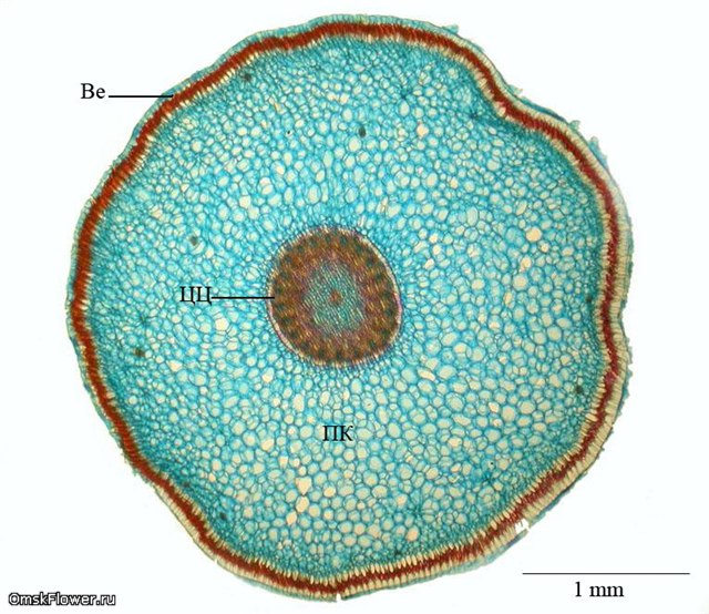 Хочу показать строение воздушного корня, например, фаленопсиса. Так вот, тот волосок, что находится по центру, то совсем не корень, то сосудистый цилиндр корня. Дальше так же живые ткани (названия ниже на фото). И ТОЛЬКО СРАВНИТЕЛЬНО ТОНКИЙ СЛОЙ СНАРУЖИ ИЗ МЕРТВЫХ ТКАНЕЙ ЯВЛЯЕТСЯ ВЕЛАМЕНОМ!! (на первом фото он в районе коричневой линии) Многие думают ошибочно, что именно тот волосок по центру и является корнем. А дальше типа веламен. Так вот, того веламена там всего 0,5-1 мм, сосудистый цилиндр работать не может, если все вокруг пропало, он может проводить воду, но никогда не сможет ее брать без эндодермы и т. д. и без веламена, поэтому является абсолютно бесполезным без всего этого.