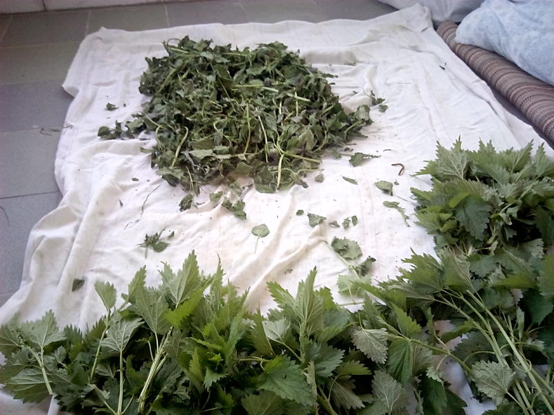 Чердаки, навесы, террасы, беседки, то есть места без доступа солнечных лучей, но с хорошей вентиляцией. Крапиву раскладывают на полотне, картоне или фанере слоем не более 3-4 см.