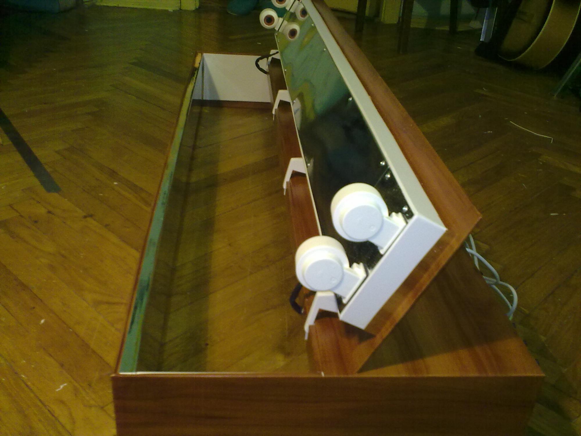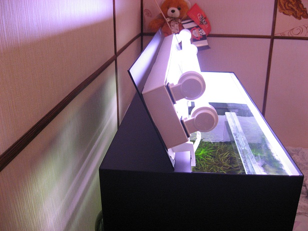 2 лампы Т5 по 8Вт с отражателями , охлажднение+даже ночная подсветка.(отдельное включение каждой лампы, куллера и подсветки)