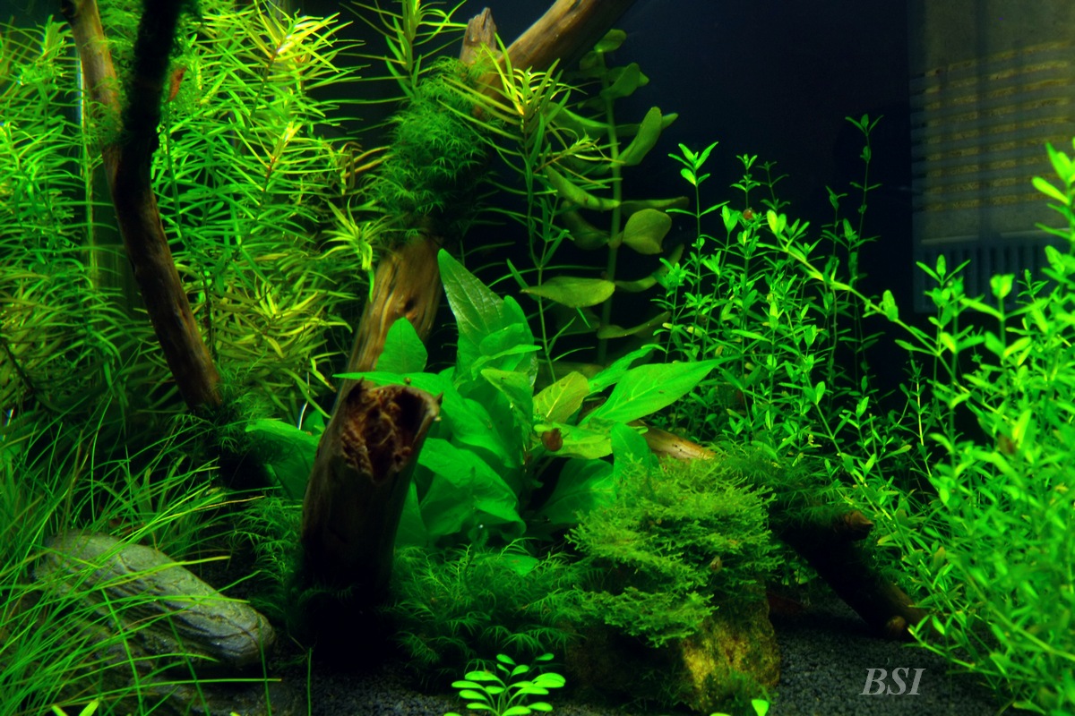 А еще обратите внимание на два мощнейших фитофильтра, которые ну просто обязательно использовать в новых аквариумах: Лимнобиум побегоносный (именно красивые пушистые корни собирают муть и кушают органику) и риччия, которая сьедает полностью всю бяку в акве