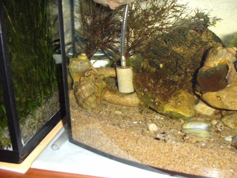краб мраморный - 2 (не вижу уже 3 дня, толи спрятались сильно, толи сбежали. Еще на море из тазика тож пара исчезла