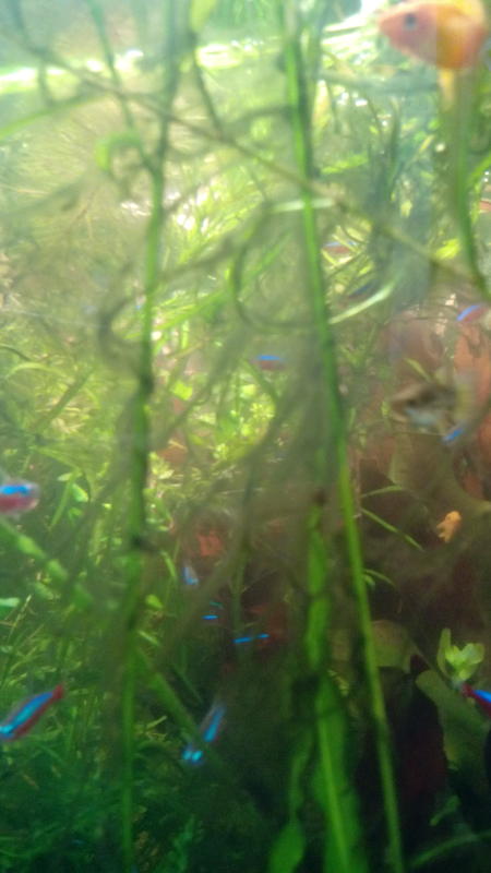 Аквариум 220 литров, запустил 12.12.14, посадил пару растений, насыпал базальтовую гальку. 19.12.14 поменял воды из под крана отстоянной сутки, 70 литров + и пару растений подарили подсадил. лампы обычные лдс 1200 мм по 36 ватт. Работают по таймеру 12\12. Анализа воды нет, всегда всё гуд. Гуляет 15 неонов...