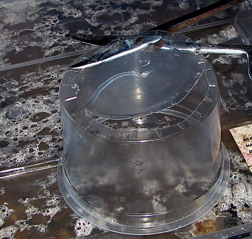 Взял прозрачный пластиковый стаканчик на 250 мл. Отрезал у него дно оставив загнутый край как на фото. Нанес на него аквариумный силикон. Подготовил уже белую, а не черную ткань. Предварительно уложил ее на кусок полиэтилена. Это для того чтобы прошедший через ткань силикон не прилип к чему нибудь, еще ведь надо будет потом хорошенько все обжать, чтобы не было слепых карманов между стенкой стакана и тканью. Чтоб не дай бог любопытная деточка туда не залезла !!!