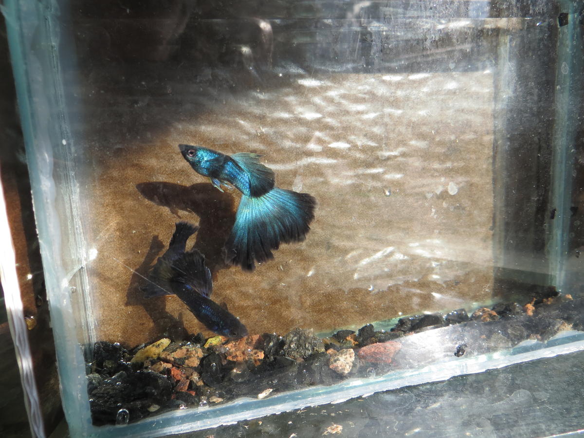 Самка №1 , находилась в растворе МТС 18 дней - у нее заметно превращение анального плавника в "лжегоноподий" , на боку явно присутствует красная бровка(хорошо видна на видео - самка справа) .