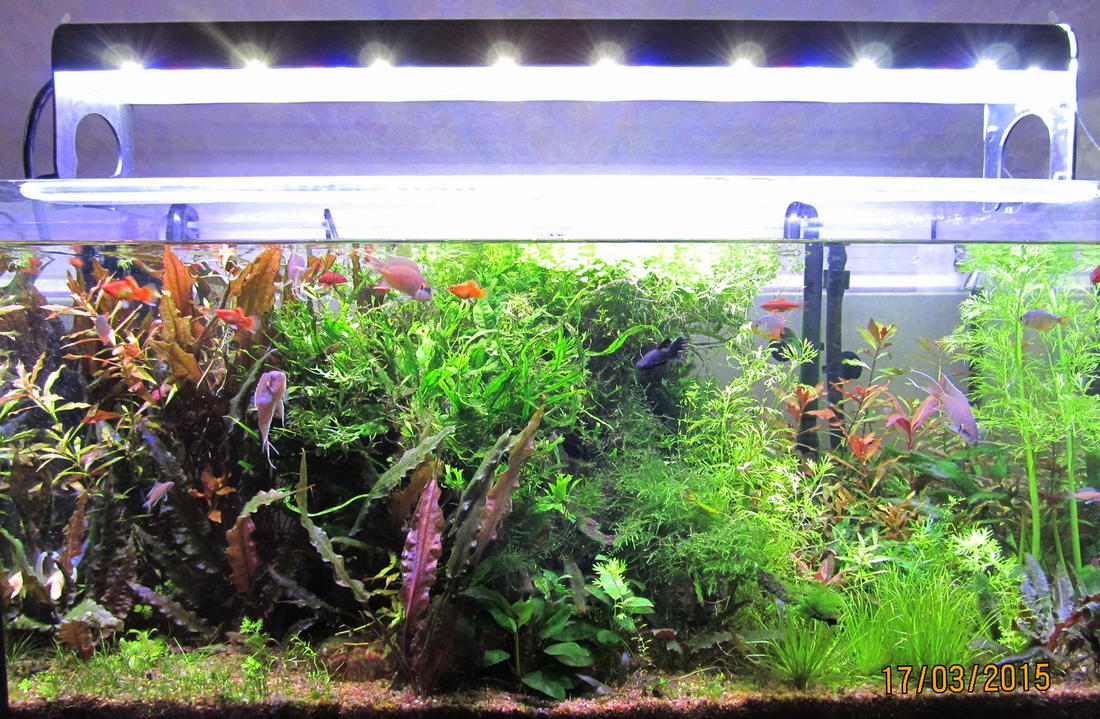 Собственно в продолжении тематики - борьба с эдогониумом. Нитрат повышен по отношению к фосфату 15:1, по совету Юси не вношу калий отдельно. По микро провел смену удобрения уже неделю на самомес от Dee - травке нравится больше краснее людвигия, быстрее расти альтернатера начала и более красный лист. Но, вот изменений со стороны эдогониума не заметил.