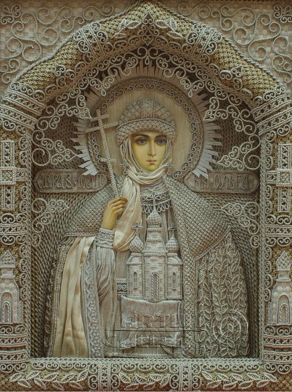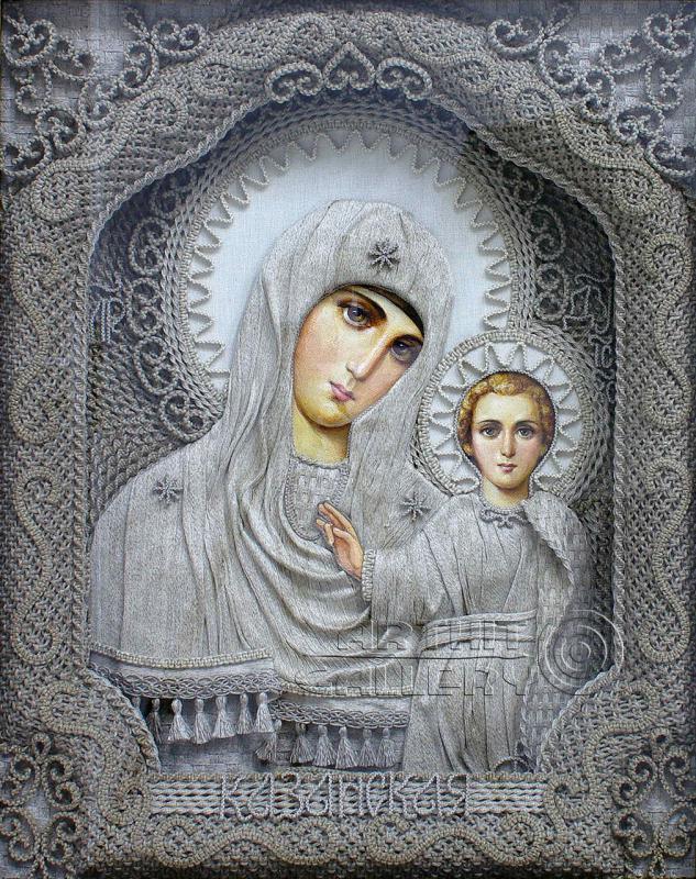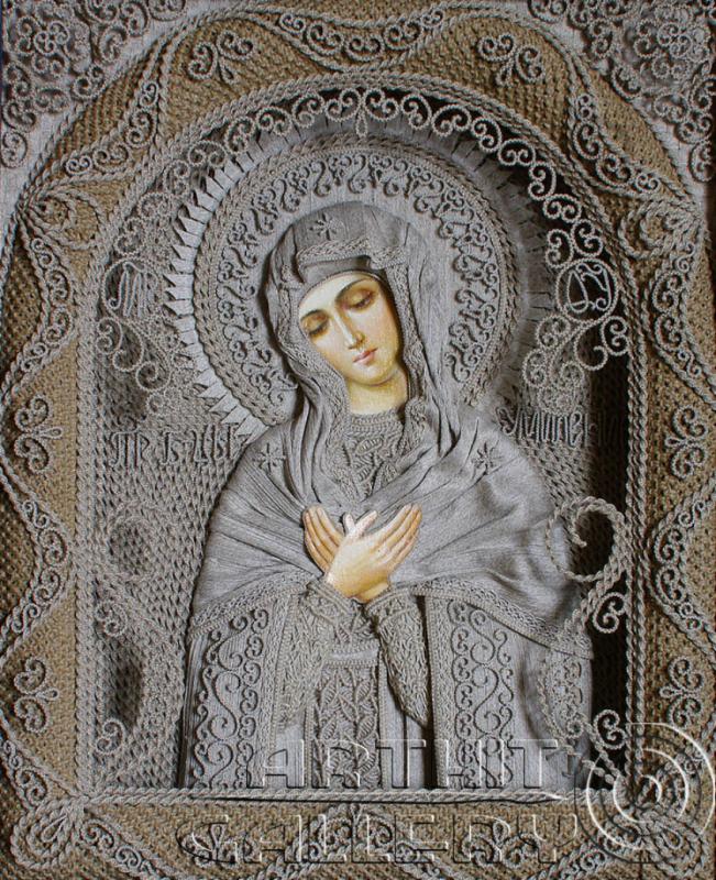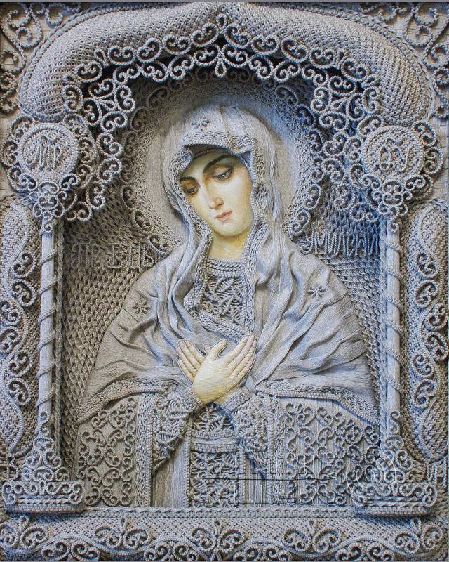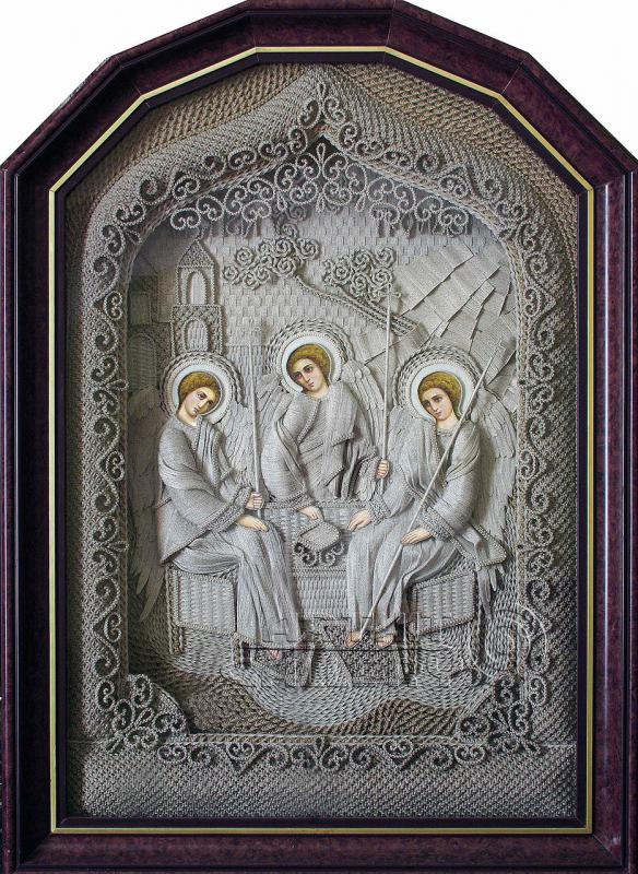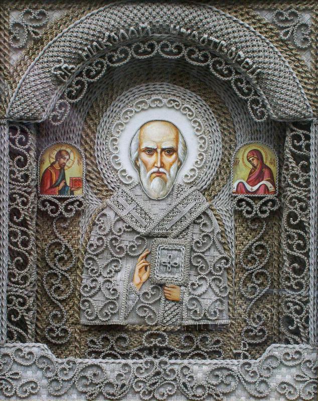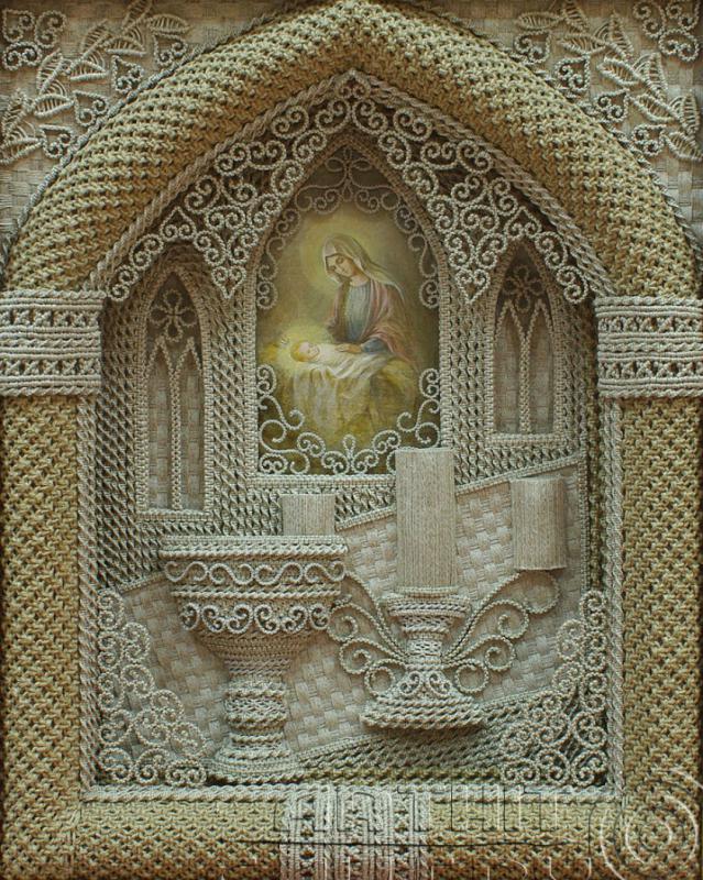 Работы Денщикова покоряют удивительной атмосферой света, добра и спокойствия. Все они выполнены в технике "узелковое плетение", в которой автор работает более 30 лет. Эти творения- детали узоров на образах, созданы из удивительного материала - льняной нити (0,5-2 мм), причем каждый узелок завязан вручную, то есть без применения технических средств (спиц, крючков и т.п.). Такая техника уникальна и не имеет аналогов в мире. Специалисты называют Владимира Денщикова основоположником нового вида иконотворчества.