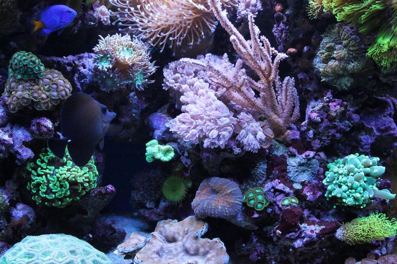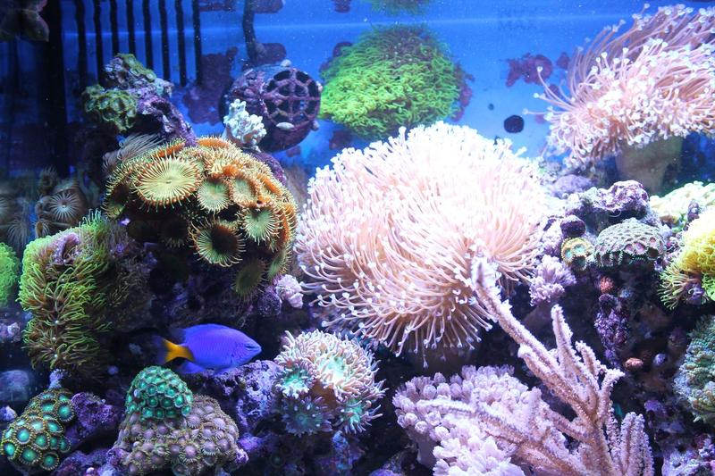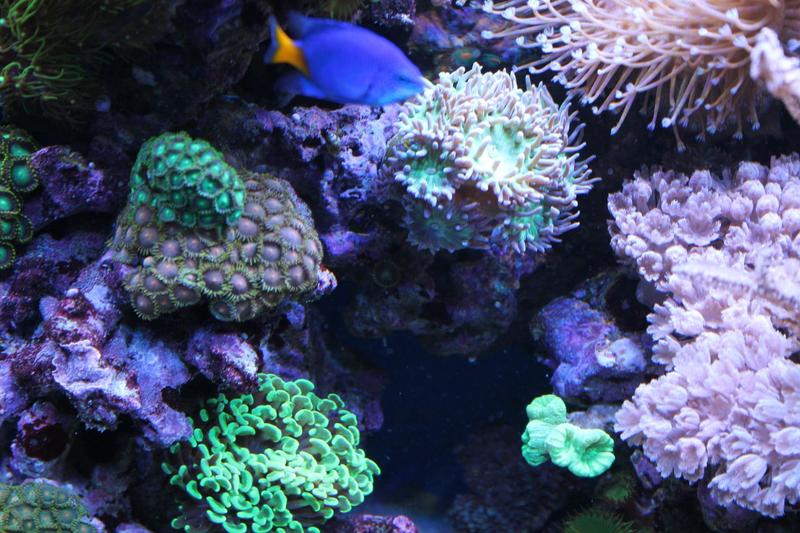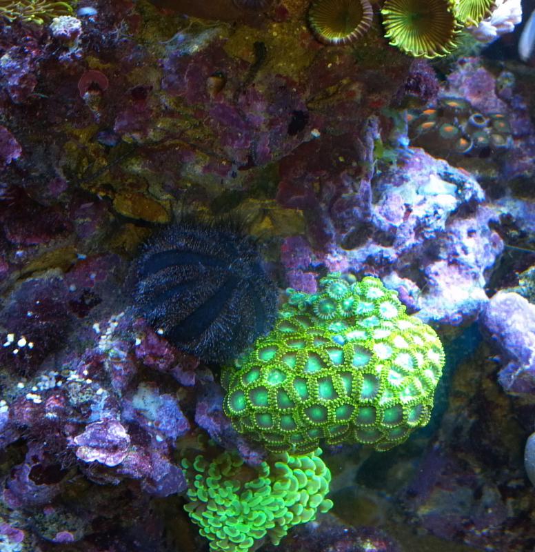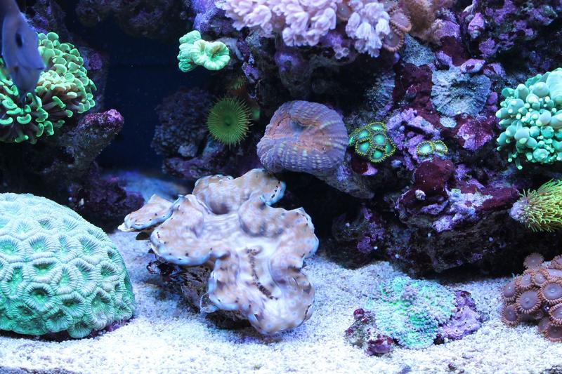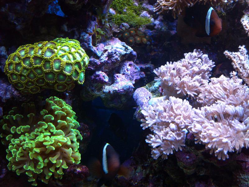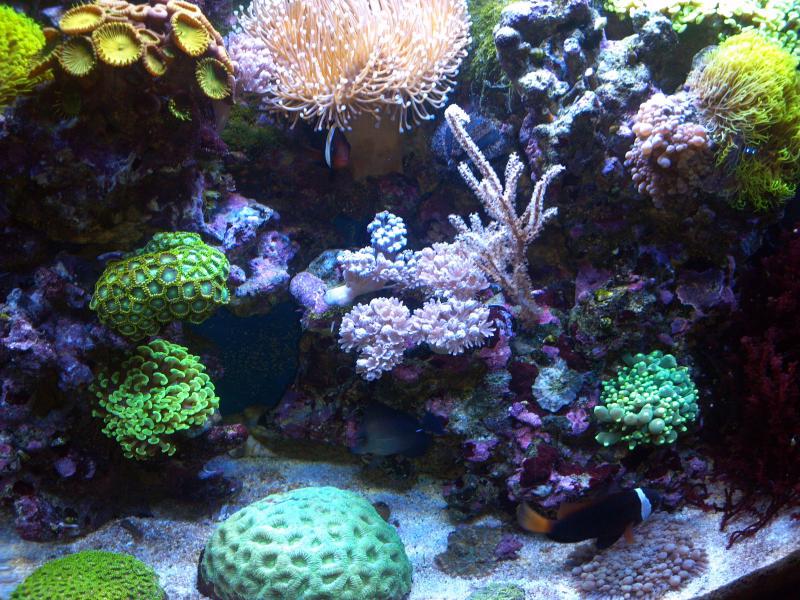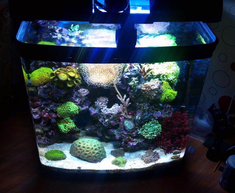 Изменений достаточно много: поменял клоунов на оцелярисов,поскольку томатные уже не помещаются. добавлены коралы- несколько колоний зонтов,дункан,политои,паразоантусы,родактисы и так,по мелочи. И вот недавно тридакна 12 см появилась ...наблюдаю. Пытаюсь разобраться сколько кальция надо добавлять и нужно ли вообще.