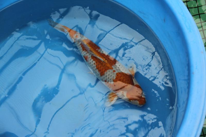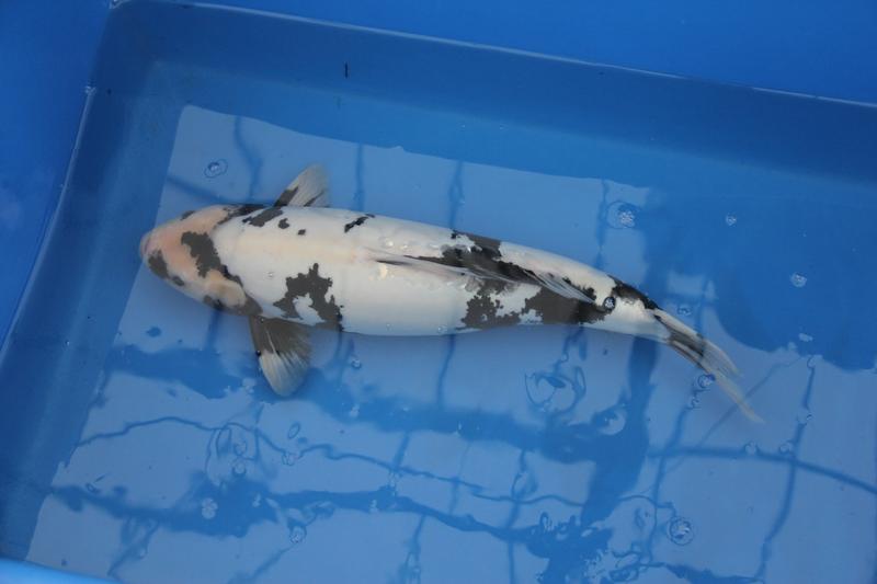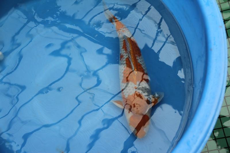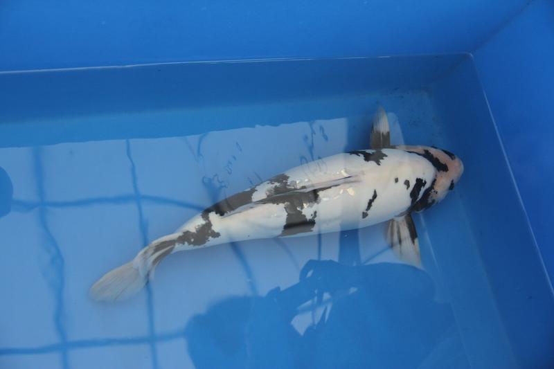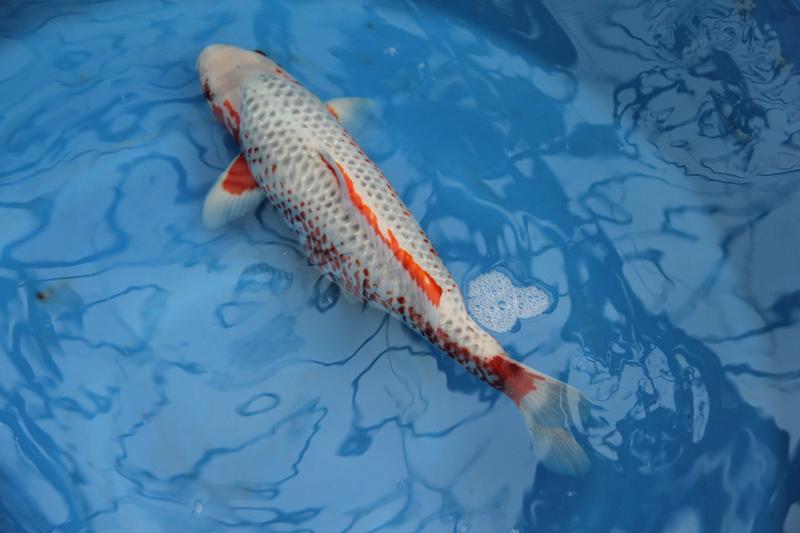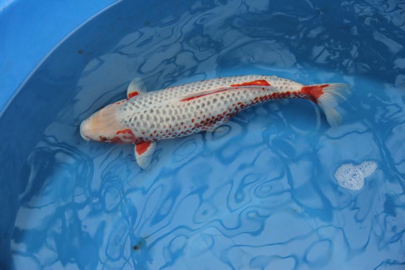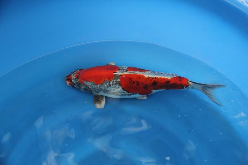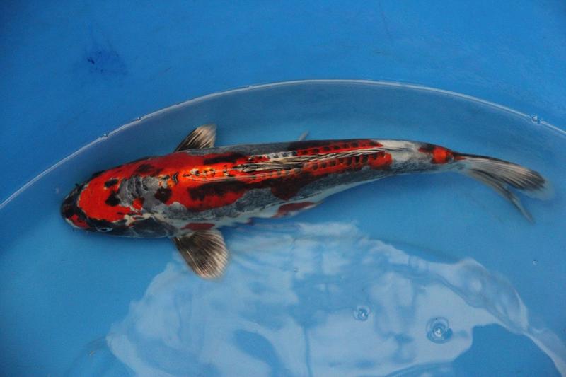 мощная спина , широкие плечи , хребет крупный хвост широкий ! Кожа хорошая , фукурин просматривается даже на таком фото ! Красный не раскрытый полностью , он только начинает становится гуще и насыщенней , красиво лежащие пятна красного на хорошем белом! Черный только начинает подниматься !!! 2-3 года и эта рыба станет совсем другой !!!