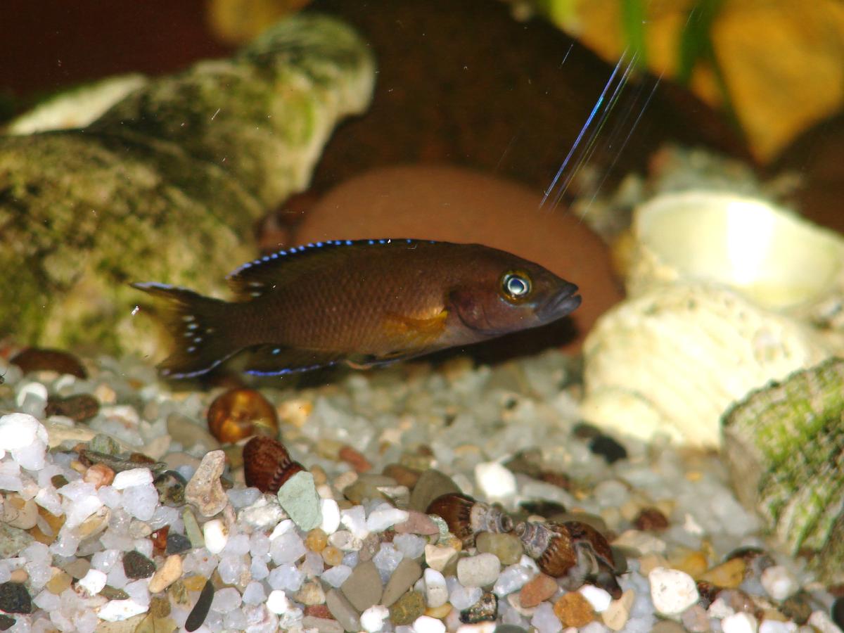Подросток лампрологус бревис . Сразу прошу прощения за грязное стекло , но кадр весьма интересный.