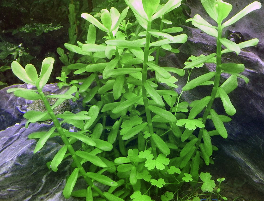 Людвигия овалис (Ludwigia ovalis) Симпатичное, нетребовательное аквариумное растение с небольшими зеленовато-красными овальными листиками. В зависимости от условий освещения, окраска листьев растения может меняться. Верхняя сторона листовой пластинки темно-зеленого цвета, но при достаточно сильном освещении становится красной. Нижняя сторона практически при любых условиях остается очень красной, благодаря этому создается очень красивый контраст. Людвигия довольно быстро разрастается, пуская с основной веточки боковые. В итоге вскоре образуются красивые густые кусты.