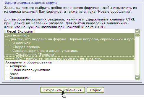 Мой кабинет » Настройки и параметры » Опции » Фильтр видимых разделов форума