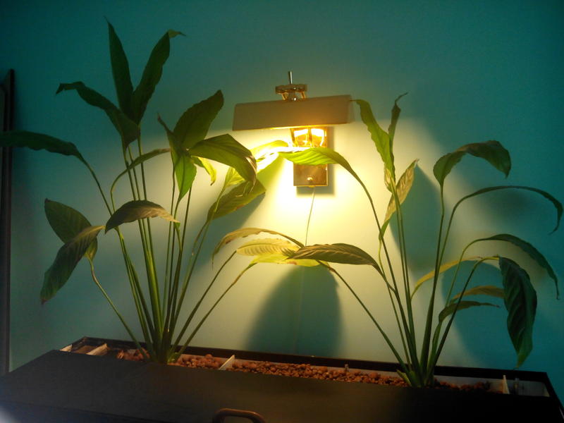 Далее немного вправо на переднем плане Спатифиллум - также отличное растение для фитофильтра, немного привередливое - чуть не хватает света или воды и листья начинают портиться, становятся частями коричневыми.