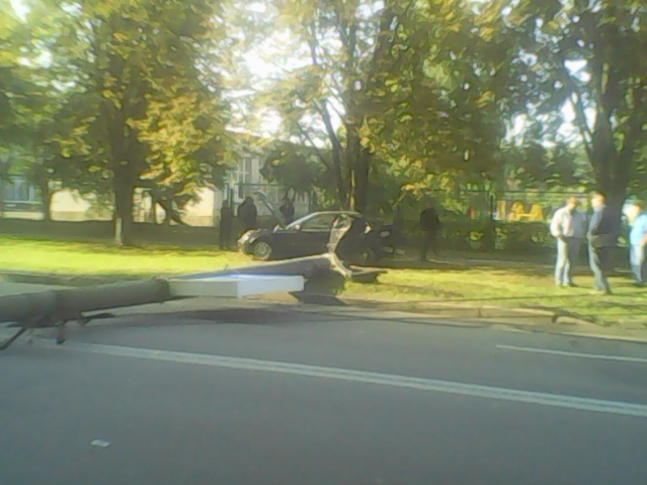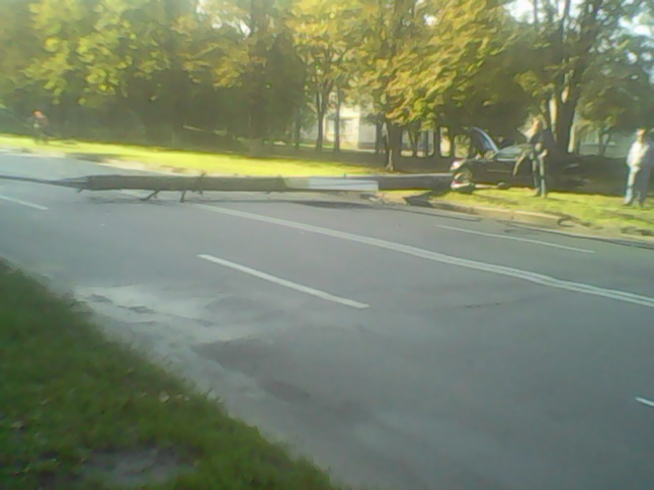 ...а вот менее веселые снимки прошлого года,осени.Автомобиль врезался в бетонный столб и снес его на ул.Деревянко.