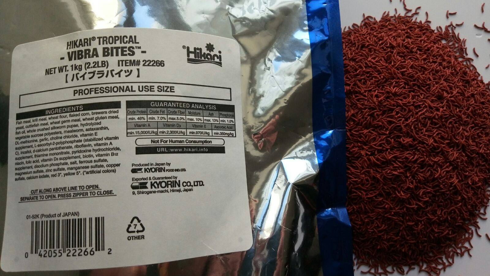 Многим нравится рыбка Тетрадон, но бояться покупать ибо рыбка отказывается есть сухие корма. В данном случае корм Hikari Vibra Bites идеальное решение он в форме червя (мотыля).