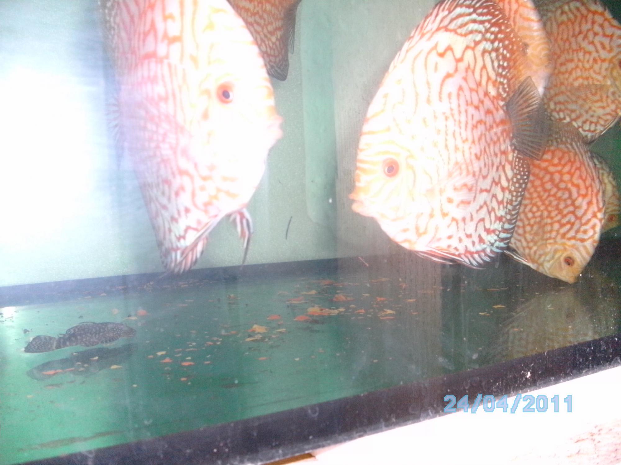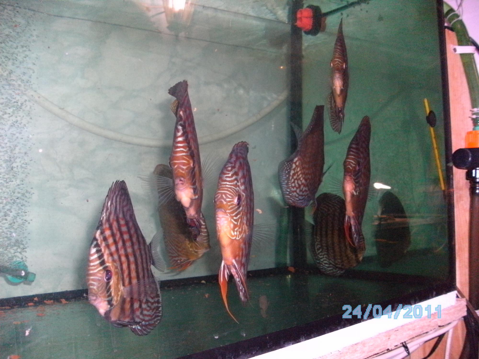 Давайте я расскажу как я нашёл дискусов, ну или они нашли меня. Содержу различные аквариумы в основном это живородки, фронтозы, американцы ну и малави. На рыбу дороже 500 руб смотрел с опаской. У нас дискусы около 1000 малые, крупные около 3500 руб. Я не боялся что не выдержу температурный режим, до этого держал уару(соседи дискусов с одного биотопа так сказать, впрочем как и северумы), метали икру то есть условия подходящие воссоздал. Уару едят растения, так что держал в скалах Как то зайдя к знакомому (Александру) увидел у него дискусов привезённых только что с Москвы, восхитился, полюбовался, высказал мнение что это моя мечта да вот содержать опасаюсь уж очень они капризны и требовательны. На что был получен ответ, ничего тут практически сложного нет. Ну и забыл про них. Через неделю знакомый спросил не хотел бы я завести дискусов? Я сказал что было бы конечно хорошо но, боязно. Меня успокоили что нет ничего страшного а дискусов мне так отдадут без всяких претензий на будущее если что с ними случится. Я загорелся, подготовил аквариум 30 градусов и постоянно теребил друга чтоб уже привезти дисков домой и недели через полторы это свершилось. 7 самураев стали моими. Были посажены в 180 литровый Juwel где была аэрация и 1200 Tetratec. Подмены воды каждый день по 10% кормление сухими кормами(тетрадискус, тетравижетейбл, хикари) и фаршем. Да... и я их посадил в травник. То есть сделал для них его. Я знаю что многие говорят что дискусы и трава несовместимы, но перерыв интернет пришёл к выводу что нет ничего невозможного, даже наоборот трава и дискусы это очень даже хорошо.