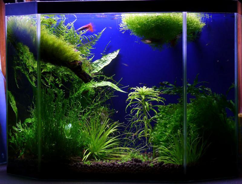В августе сего года решила сменить 10-литровый аквариум на 50-литровый. Из маленького получился мохокреветочник.
