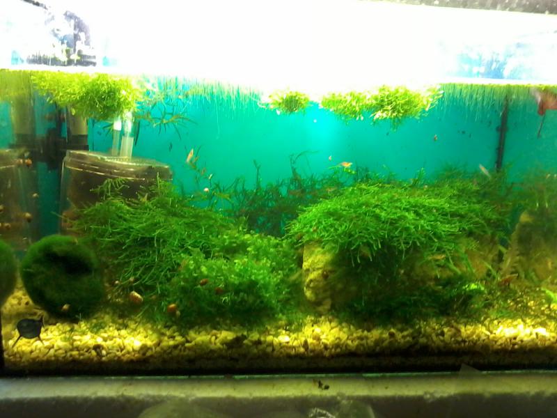 Чтото тема умерла!Но всеравно скину фотки своего креветко мшатника!Строго не судите!Фоткал на телефон и фотограф с меня плохой!Аквас запущен 3 месяца назад!1 месяц как не делаю прополку!все буду переносить в 70л!сейчас 20л,население много чериков и неокардин,боция клоун.мхи:немного яванского,кристмас,печеночьный мох и кладофора,ну и ричия!УДО и СО2 нэту!Вода водопроводная.Свет:енергосберегалка 20Вт!