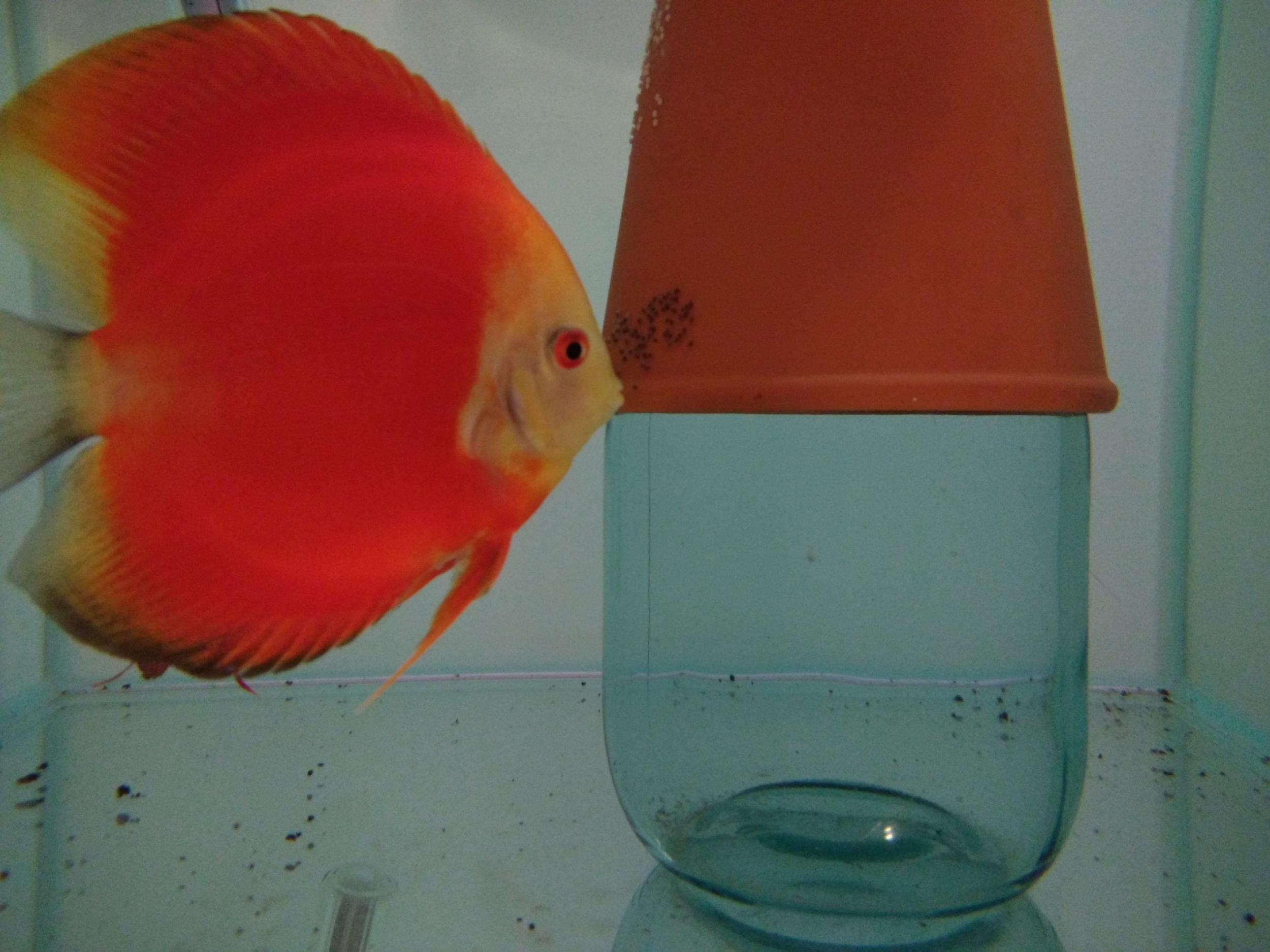 2-е кормление - усовершенствовал. Посуда должна быть чисто белая, тогда малёк сразу садится на чёрную "маму".