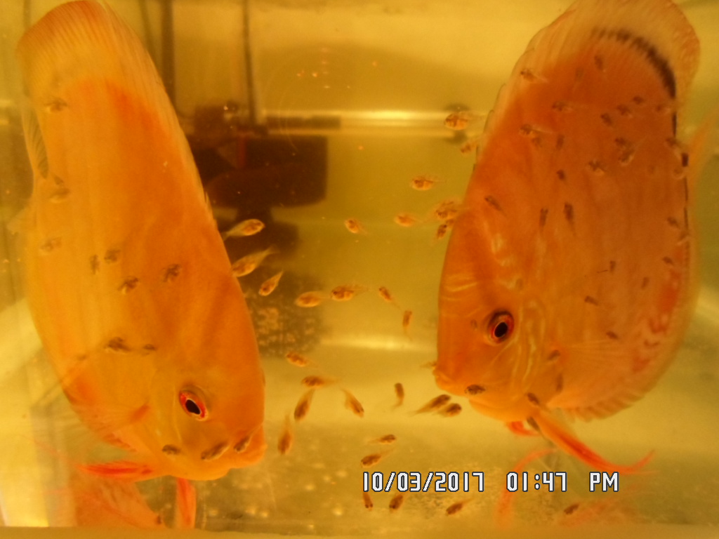 Первый удавшийся нерест одной из пар коричневых дискусовКстати эти коричневые получились от красных туркисов привезенных От Пивоварски в свое время..