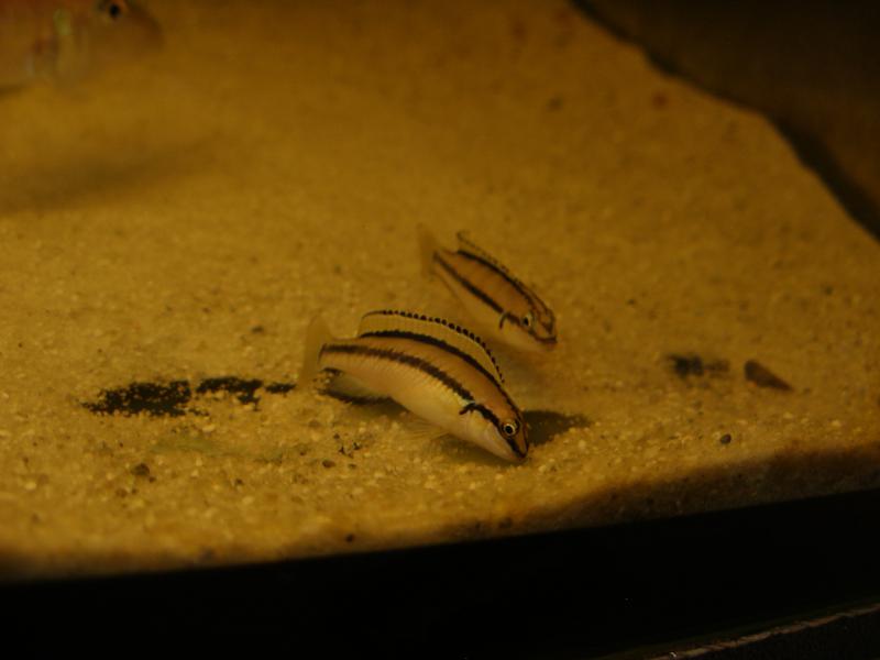 Вроде как у Тельматохромисов "засветилась" одна пара.Самец чуть-чуть крупнее самки.Рыбки в течении получаса как бы игрались между собой без признаков агрессии,затем были разогнаны самцом Энантиопуса.