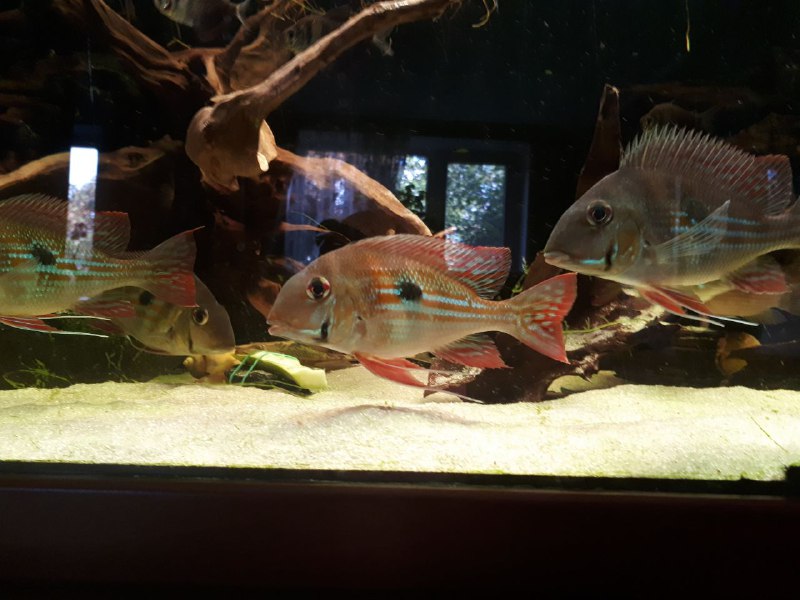 [B]з червоноголовими геофагусами, стайна (а не парна) риба