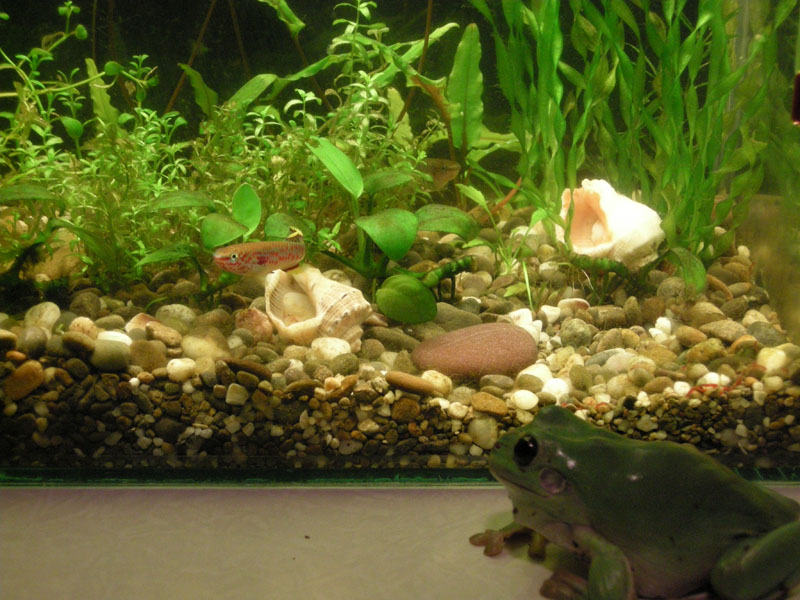 И моя ЖаБуЛя тоже, рыбки занимаются тем что ее дразнят. Пришлось между террариумом и аквой ставить перегородку.