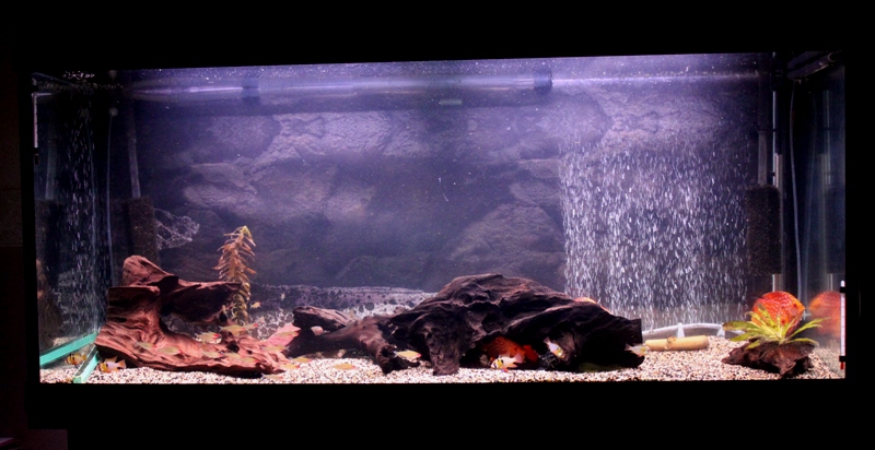 Ну а началось всё спонтанно. После ремонта квартиры прикупили мебелюшку кой-какую, а в ней место под телевизор. А так как он уже висел на стене, то получается как бы дыра в мебели. И пришла мысль. А не поставить ли туда аквариум. И аккурат вписался 100-литровый аквариум. Поехал на птичку через пару недель за рыбками (оборудование работало, бактерии размножались). Купил "компот" у разных продавцов: пицелии, барбусы, скалярии, гурами, лялиусы, коридорасы, птерики и ещё кого-то... аулонокара...ну вообщем...). Запуск аквариума был зимой 2006г. Периодически рыбы болели, я их лечил по возможности. На место тех кто уплывал в большое плавание докупал новых. Стал читать литературу про аквариумную жизнь и просматривая разные форумы стал понимать, что не всё так просто, как казалось изначально (вместо телевизора аквариум). Стало затягивать енто дело...вообщем зацепило. Дальше больше. Увидел дискусов и... запал. Прочитал несколько брошюр, нашел инфу на дискусных сайтах...понимал, что 100л. аквариум уж очень маловат...думал...думал и вопреки здравому смыслу всё же решился завести этих красивейших рыб.