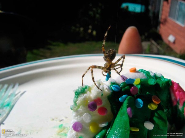 Паук-сладкоежка ворует украшение с праздничного торта. (с) National Geographic
