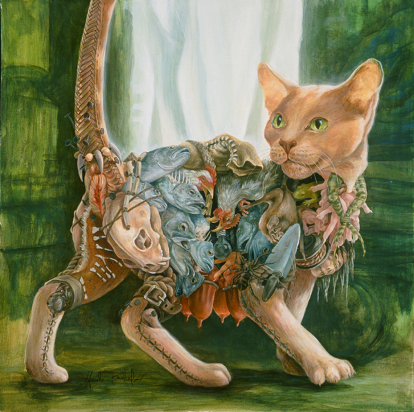 Картины Heidi Taillefer представляют собой фантастические ансамбли из частей тел человека и животных, пружин, лампочек, антикварных часовых механизмов… Сама художница находит технический прогресс «захватывающим» и утверждает, что человечество «стоит на пороге неизбежного слияния с техникой». Но в то же время в ее работах чувствуется какая-то двойственность и неоднозначность, а не сплошной восторг.