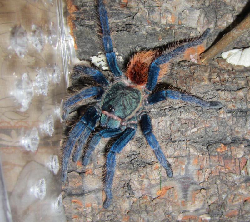 Доброго всем времени суток! Помогите определить пол. Ушки видно но без щиточка. Можно ли щитать самкой? Aphonopelma seemani blue form 5l