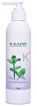 AQUAYER Калий - концентрированное удобрение для аквариумных растений содержащее калий. Необходимо для новых аквариумов с растениями, а так же для зрелых аквариумов с растениями требовательными к высокому содержанию калия в воде.