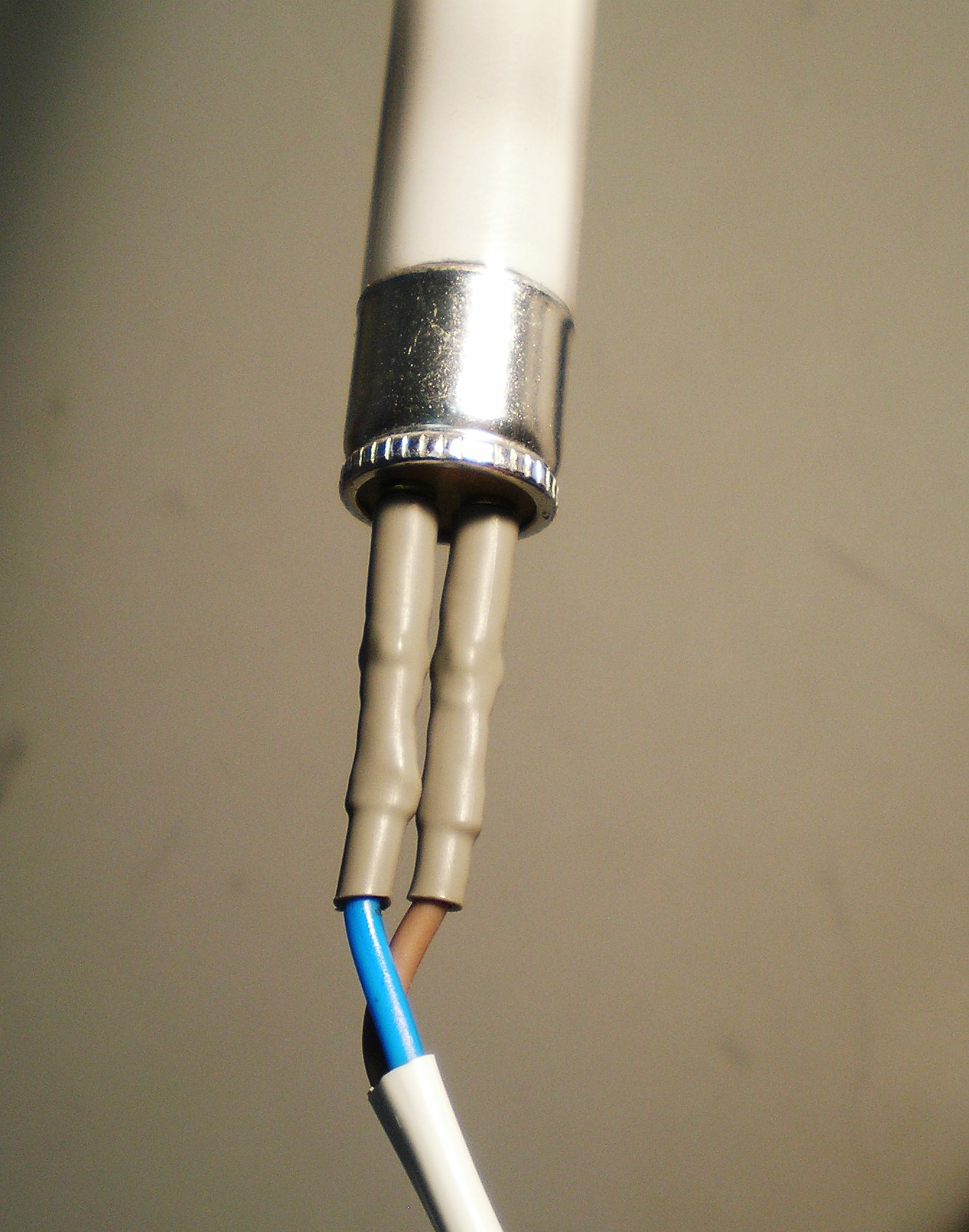 Контакты для подключения лампы - компьютерные разъемы в термоусадке. Для дополнительной электробезопасности (баночка для ребенка) провода от лампы до выхода из крышки проходят внутри пластиковой электротехнической трубки с уголком. Пространство цоколь-трубка загерметизировано обрезком силиконовой трубки. ЭПРА в отдельном сухом отсеке крышки. Отражатель вырезан из зеркальной алюминиевой потолочной панели.