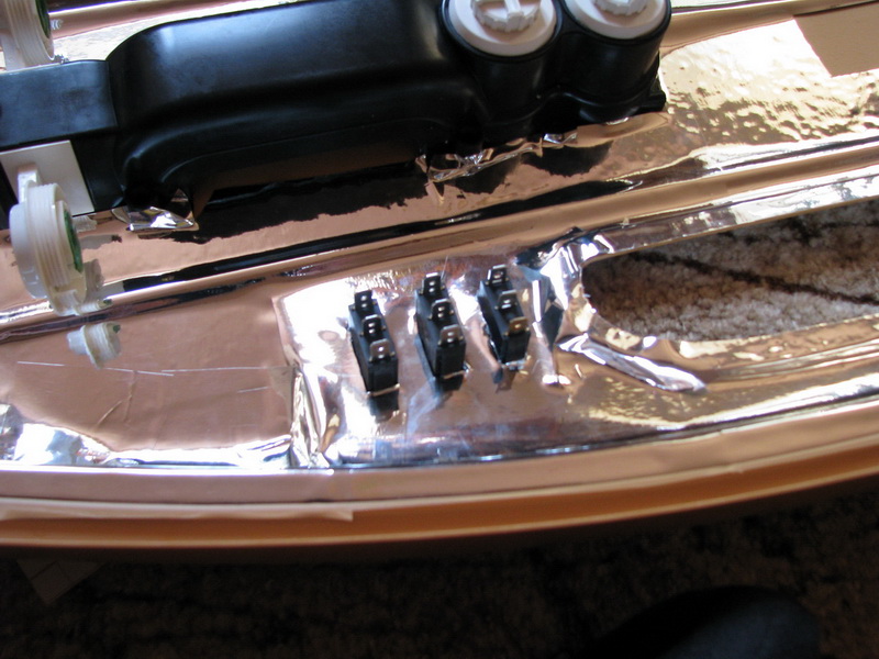 После этого в местах крепления светильника и БП для светодиодов не сильно нажимая вырезал прямоугольники оракала, куда приклеил выше написанное. Клеил термоклеем.