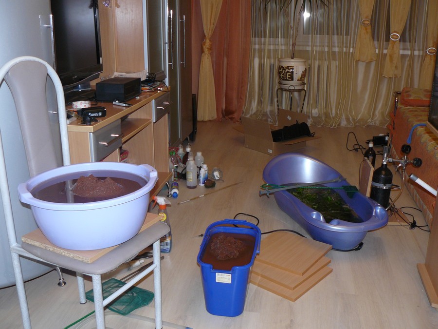 Тем временем начались мысли по поводу тумбы, фона, продажи старого аквариума….