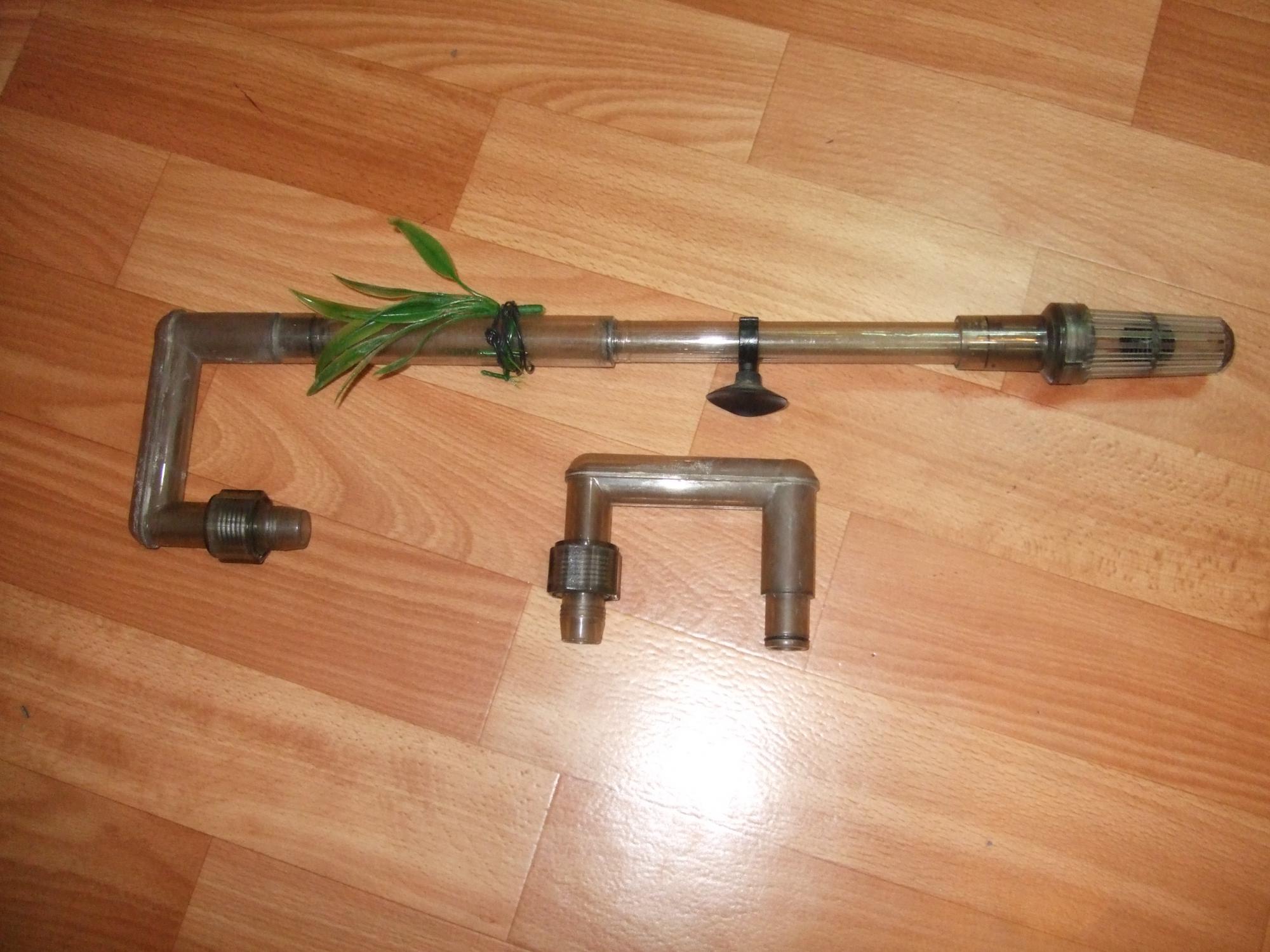 В комплекте: наполнители, краны(2шт.), шланги(2шт.), синтепон НОВЫЙ(Sera), трубки на вход воды. На ВЫХОД есть только колено, флейты нет. Фильтры не текут. Были в употребелении месяца три-четыре.