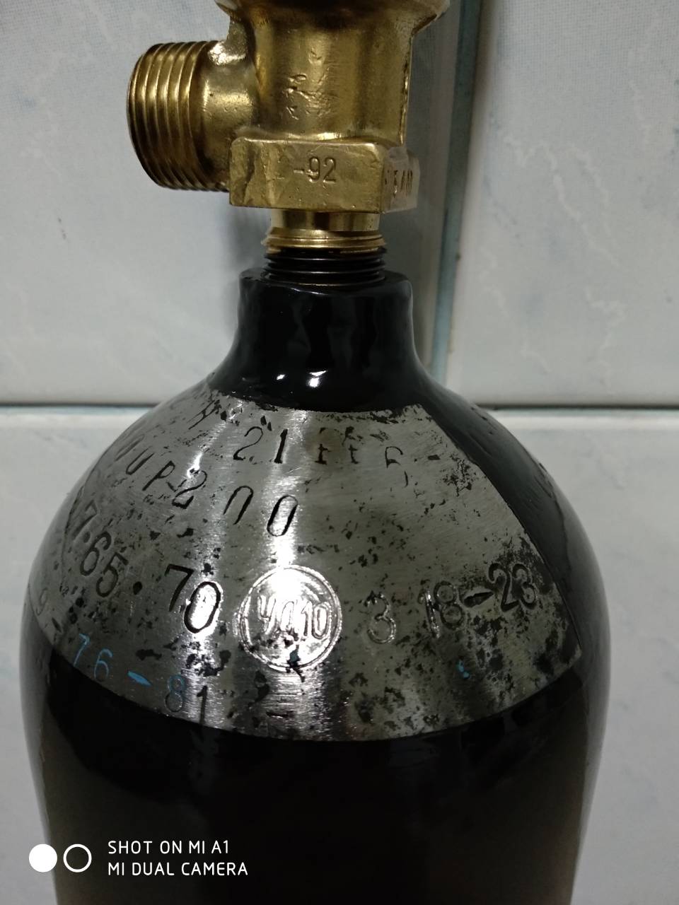 То Баллон 2л: бывший кислородный,испытан до 2023г,рабочее давление 200атм,,заправлен СО2,вентиль (б/у состояние отличное) с резьбой СП21.8,высота с вентилем 40см,дно полукруглое, фото 1,2 - 500гр.