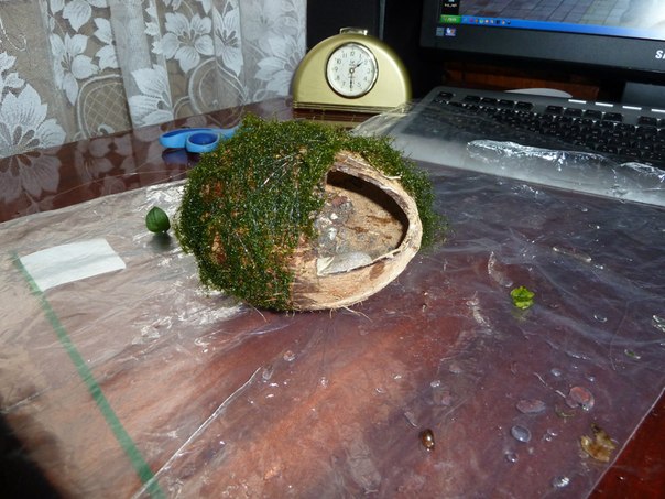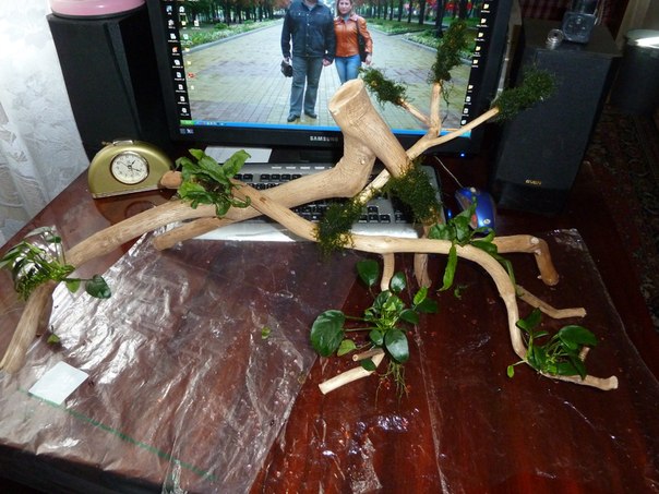 5. далее пошла как мне сначала казалась сложная стадия - в итоге оказалась самой веселой)) привязывание растючки к коряге/кокосу)