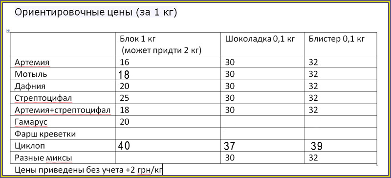 Аукцион. Корма для морских рыб и беспозвоночных