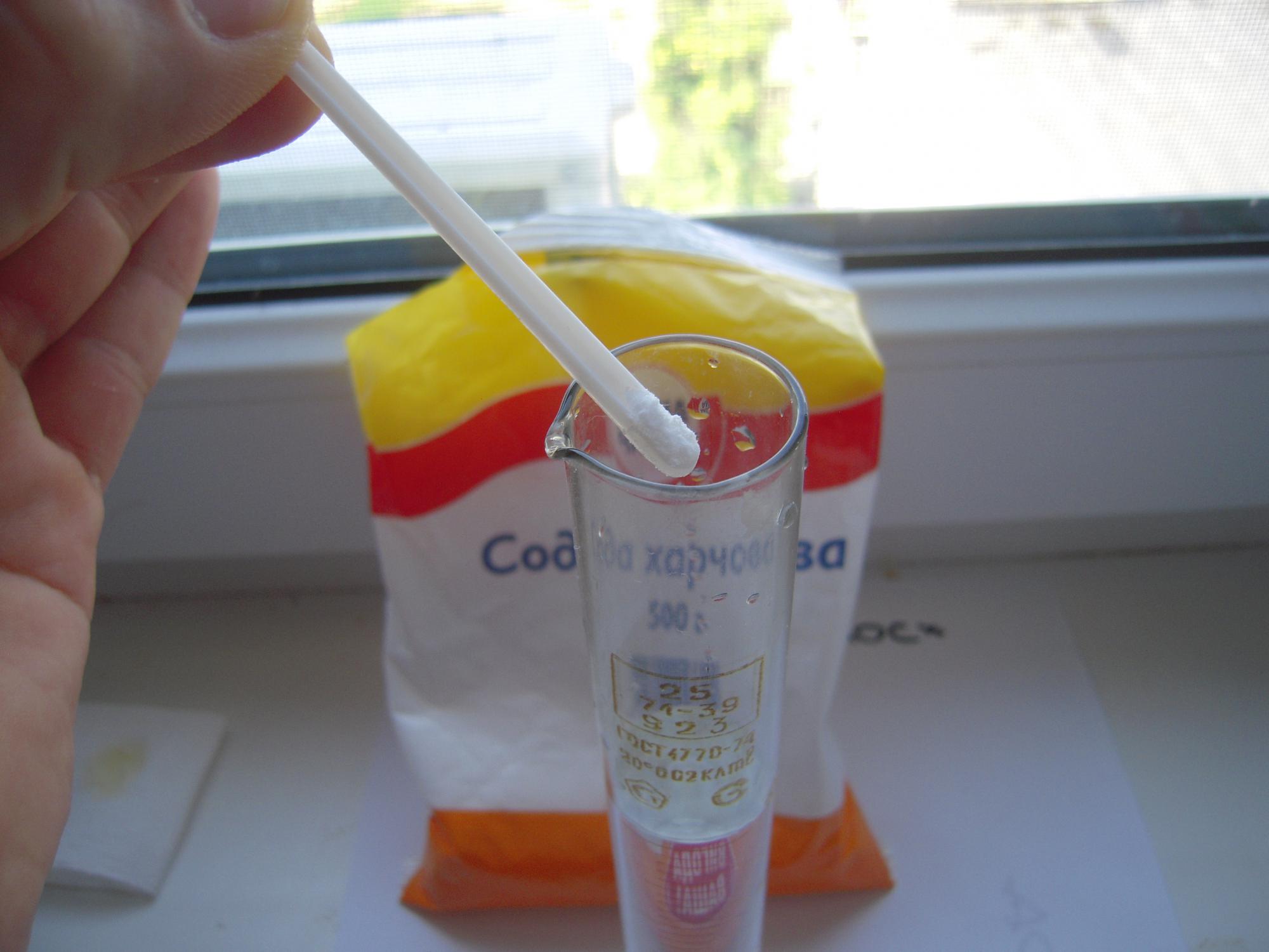 Капаем реактив в 5 мл. воды до изменения цвета с синего к желтому.