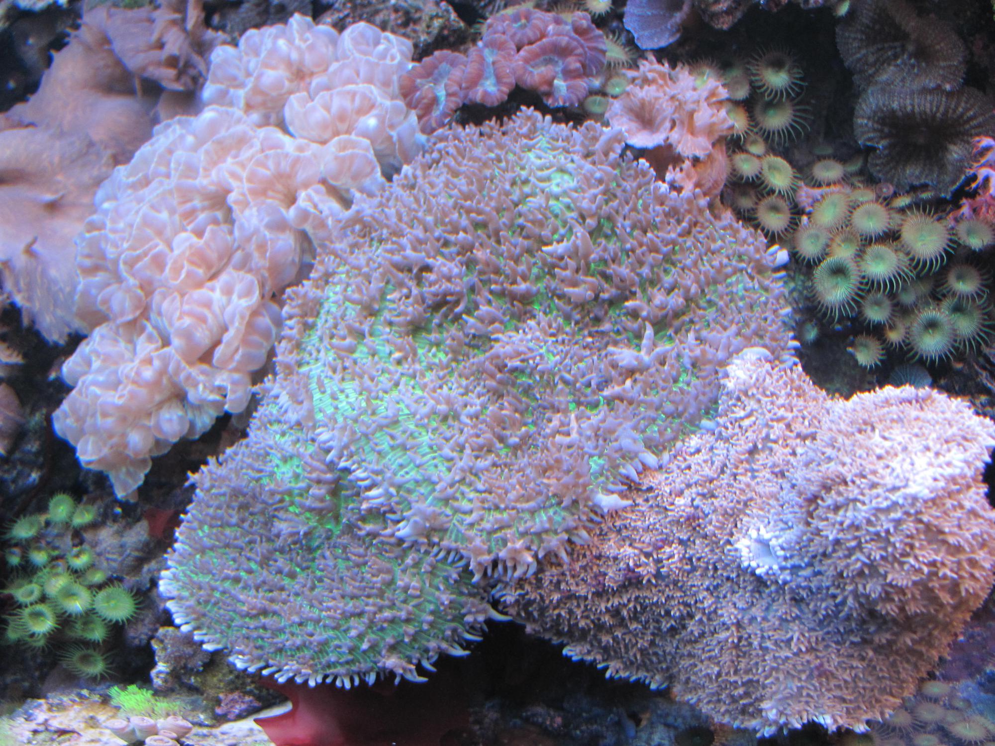 В аквариуме живут как мягкие так и твердые кораллы,из них 2 вида СПС.